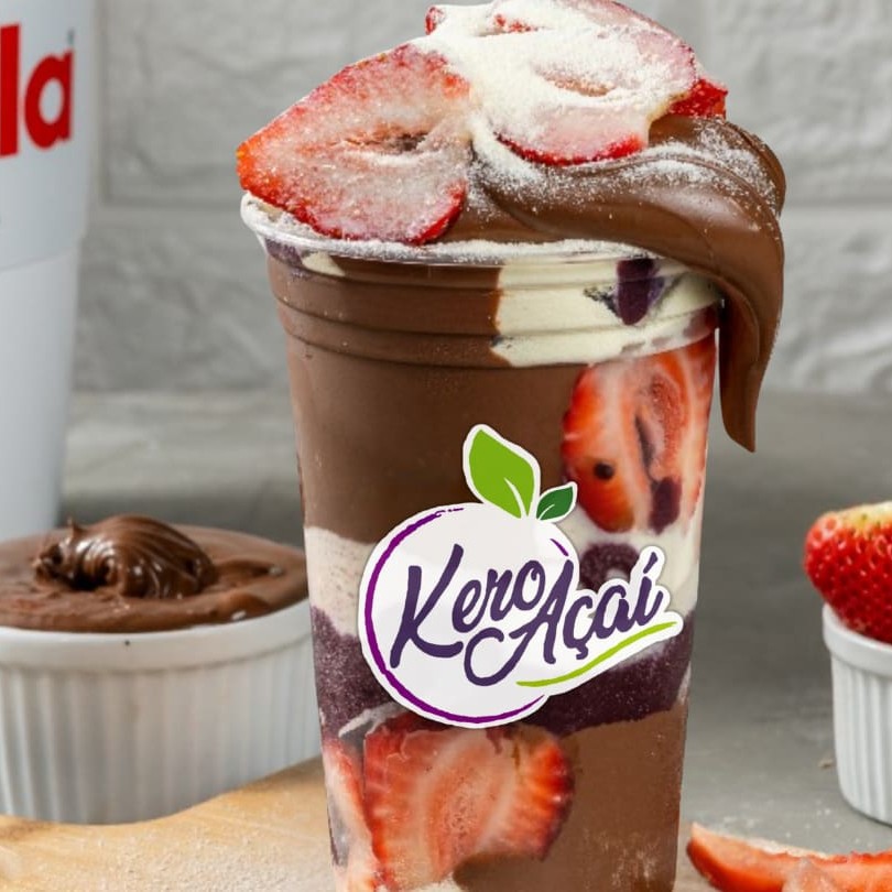 Açaí Frutella irresistível! Combinação perfeita de açaí cremoso com leite em pó, morangos frescos e Nutella. copo 300ml com opcao de turbinar no complemento