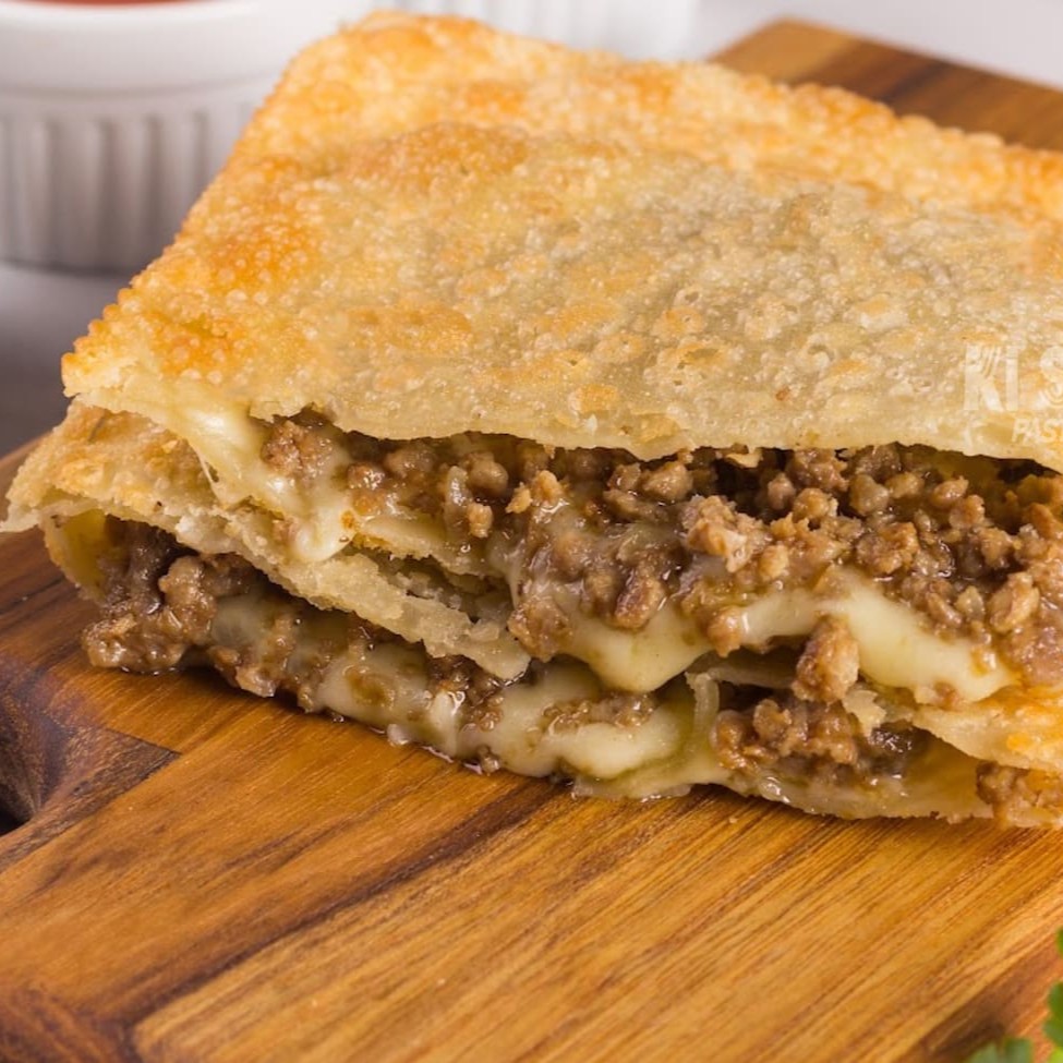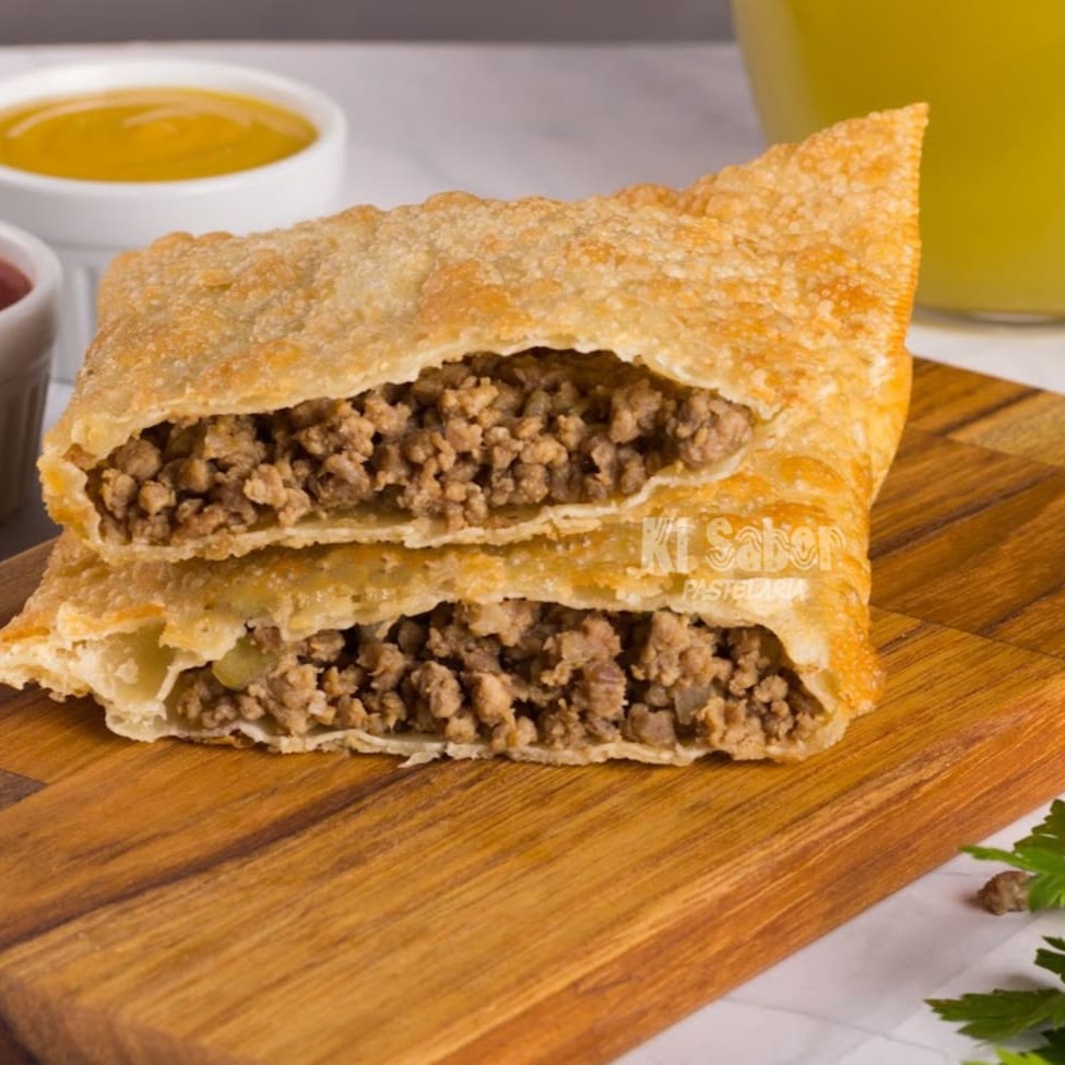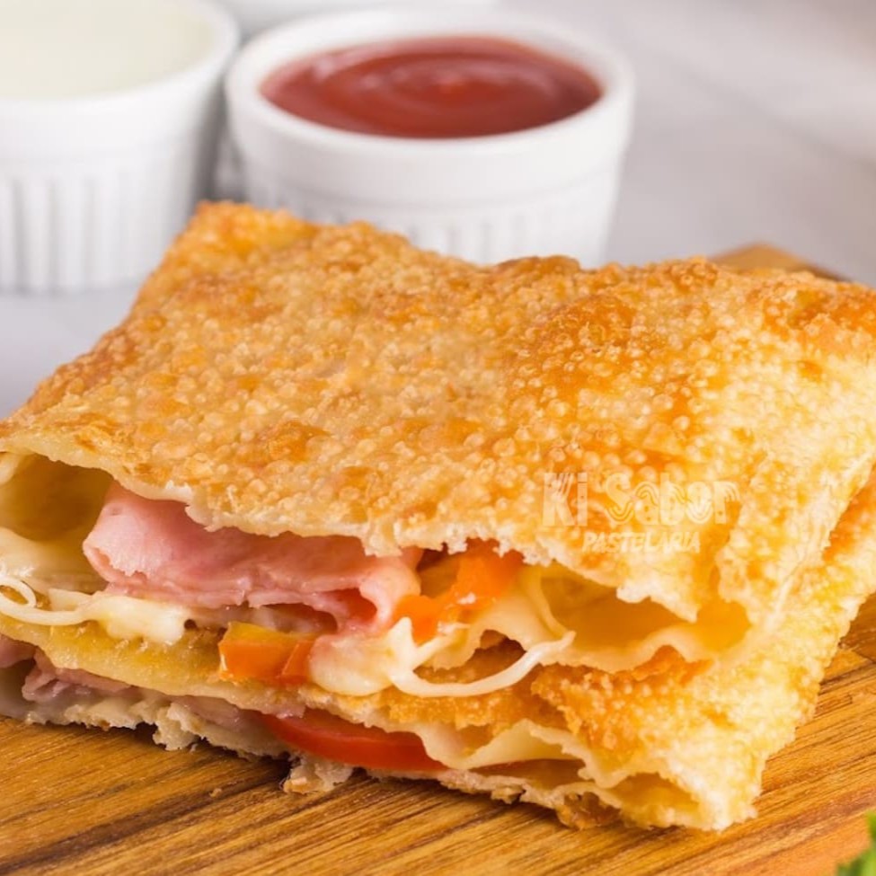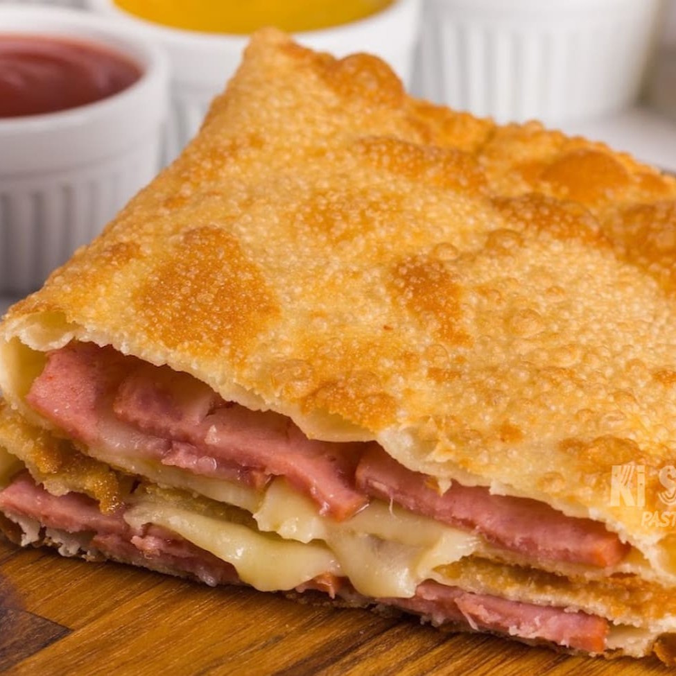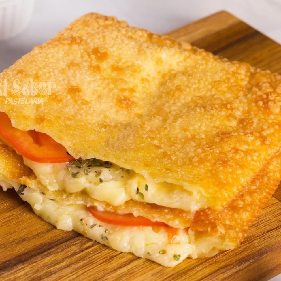 Pastel igual ao da feira podendo ser de carne ou frango. Recheios que acompanham: Mussarela, Ovo, Ervilha, Presunto, Azeitona e Tomate