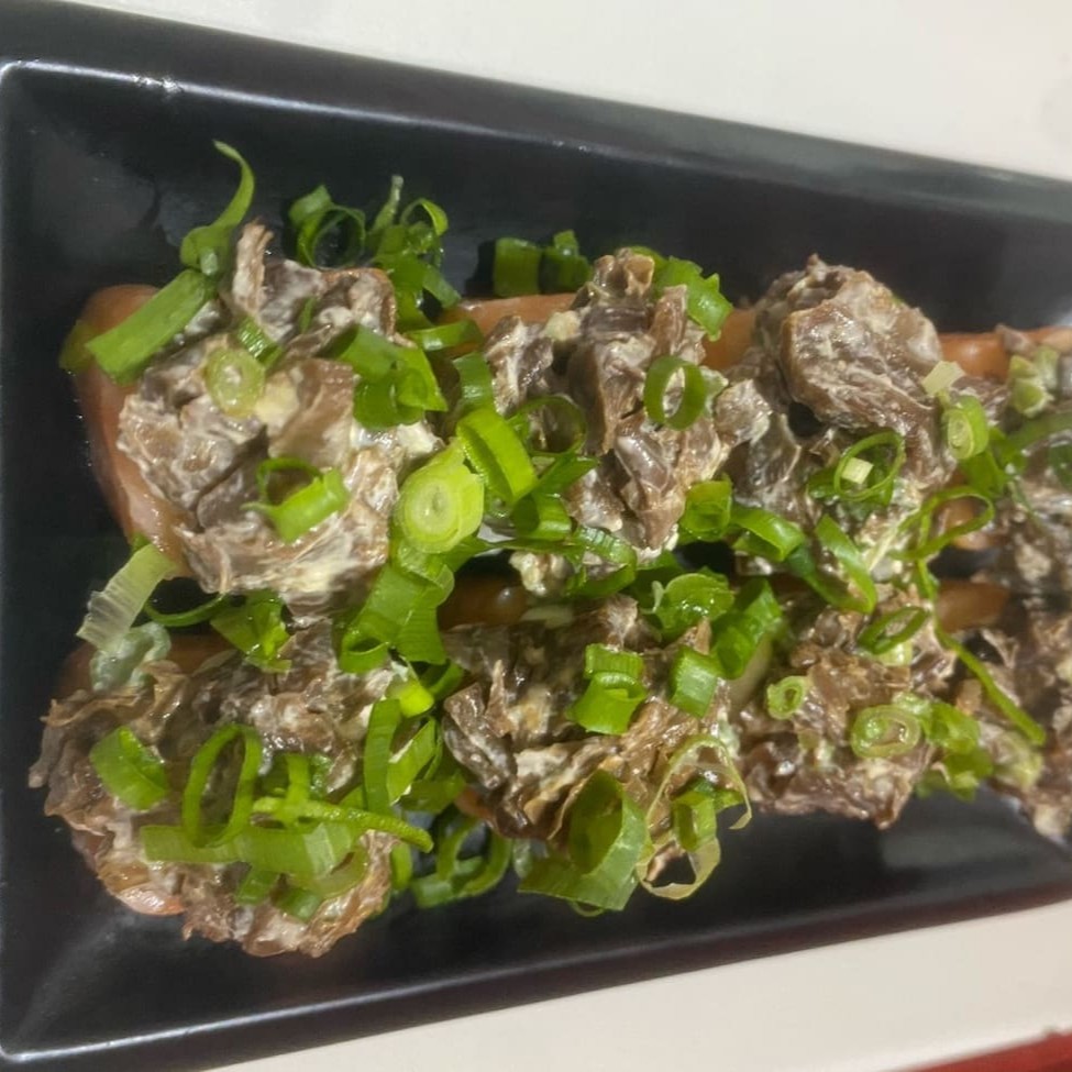 Hot holl de shimeji com cream cheese cebolinha e molho tarê