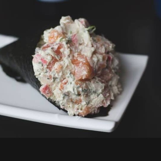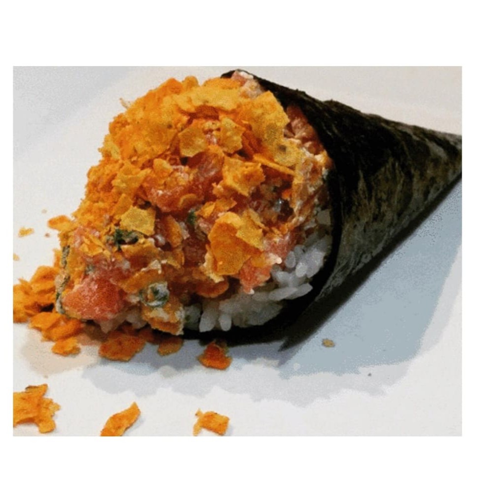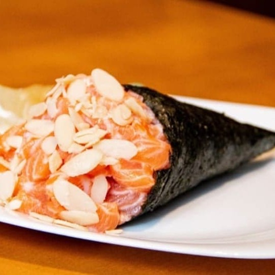 Conhecido como “Temaki Hot”, é um Temaki com conceito de outro prato chamado “Hot Roll”, ou seja, é um Temaki, neste caso de salmão, mas devidamente empanado, frito, cortado ao meio e servido com molho agridoce