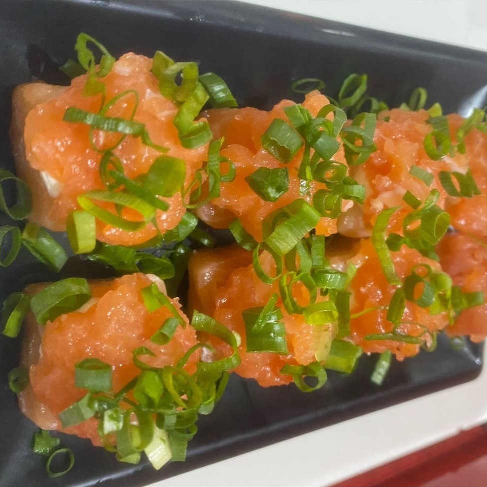 8 unidades, Salmão,camarão cream cheese, e Cebolinha.