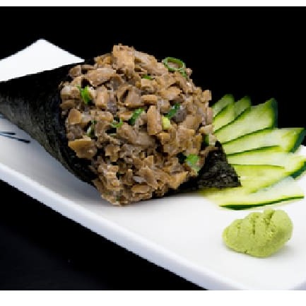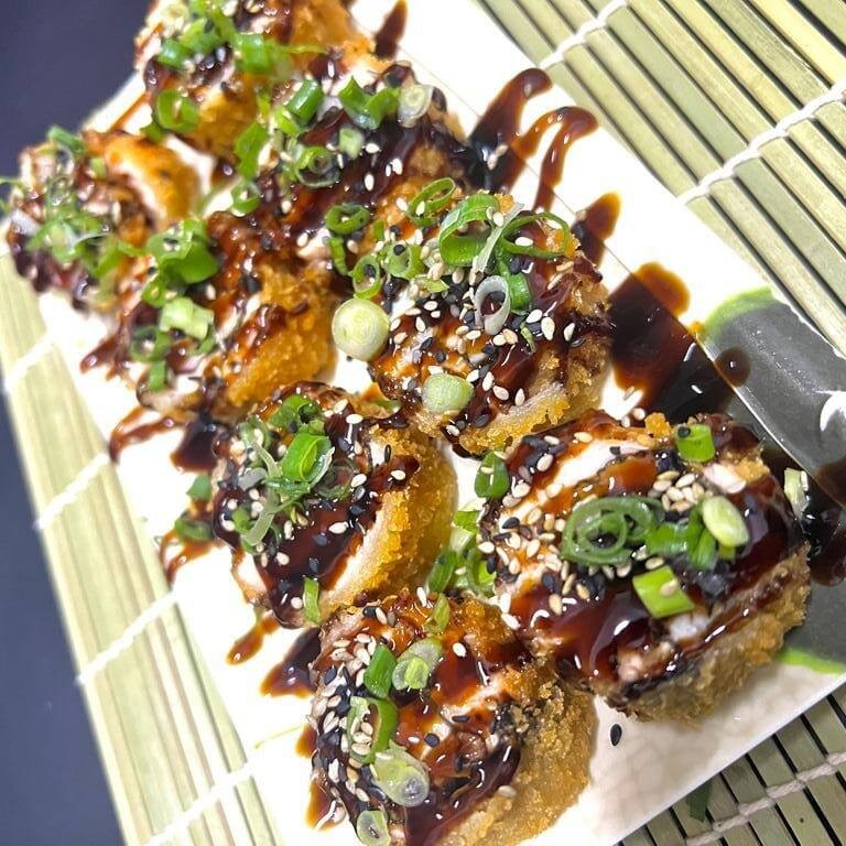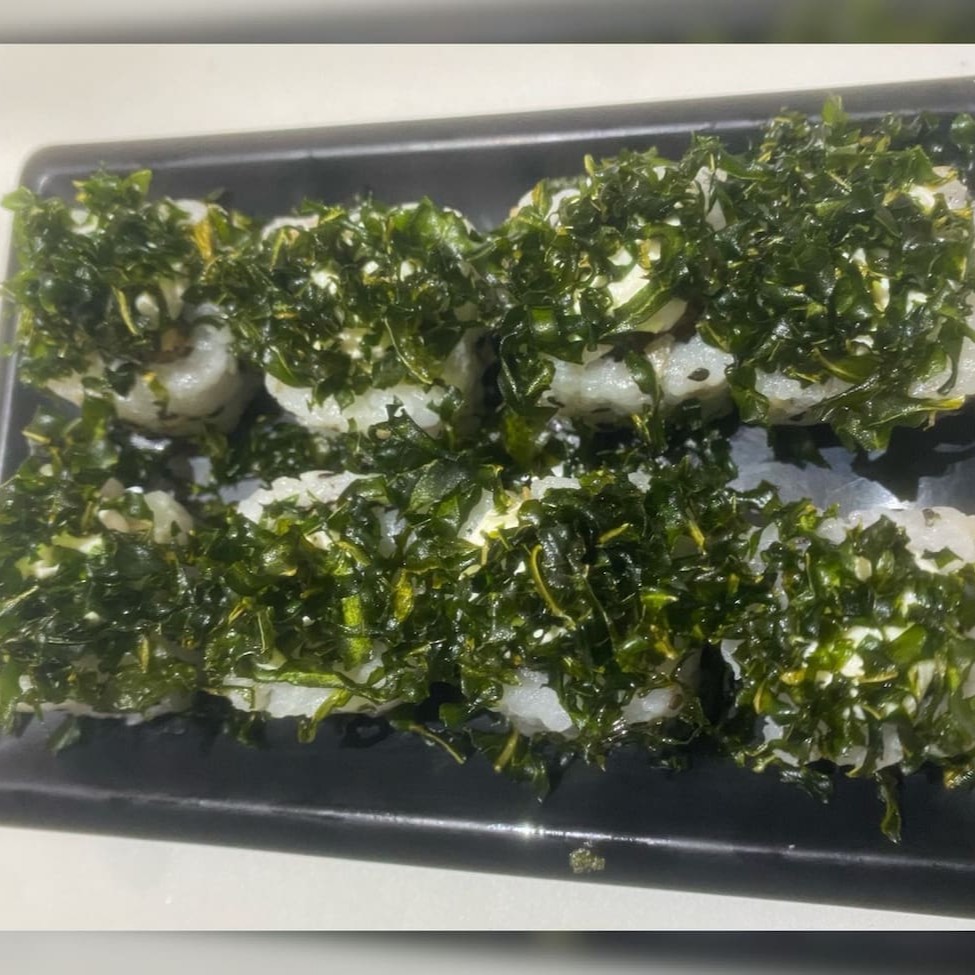 Base de arroz japonês) shimeji, manga, sunomono, alfaçe , couve crisp, gergelim, cream cheese e cebolinha.