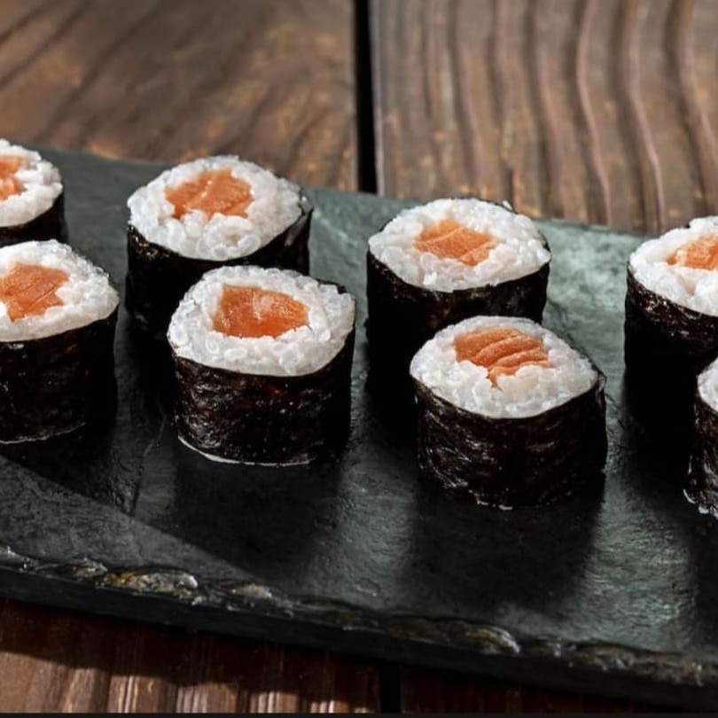 10 sashimis salmão, 4 niguiris salmão, 4 djou salmão, 4 uramaki salmão, 4 hossomaki salmão, 4 bateramaki