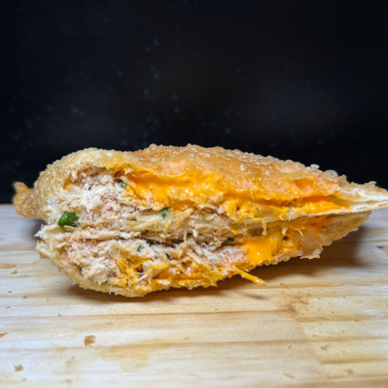 Um delicioso pastel (escolha o tamanho), produzido assim que você finaliza seu pedido, tendo como ponto forte o frescor e qualidade dos ingredientes. com frango desfiade e temperado com tempero da casa e chedder