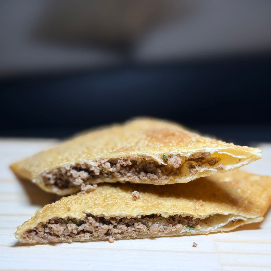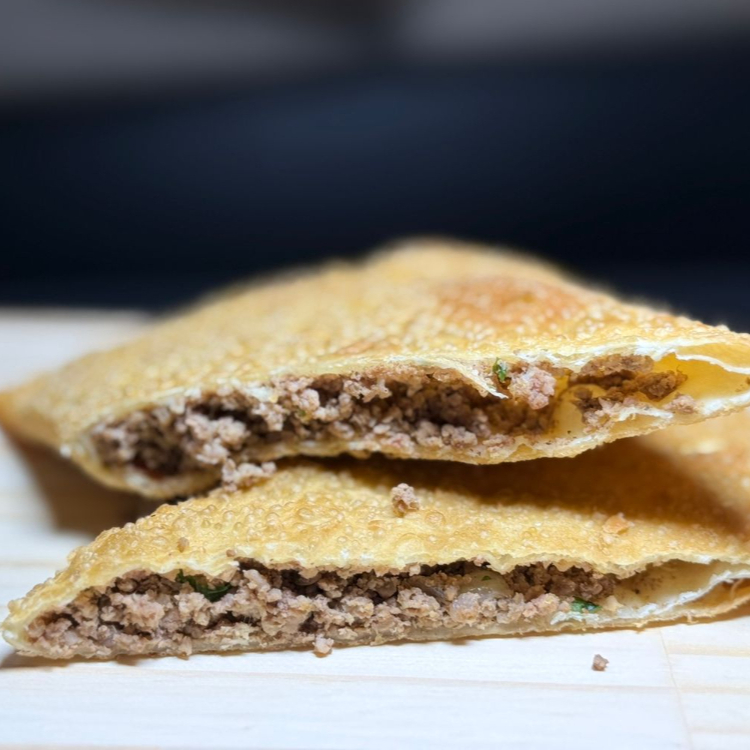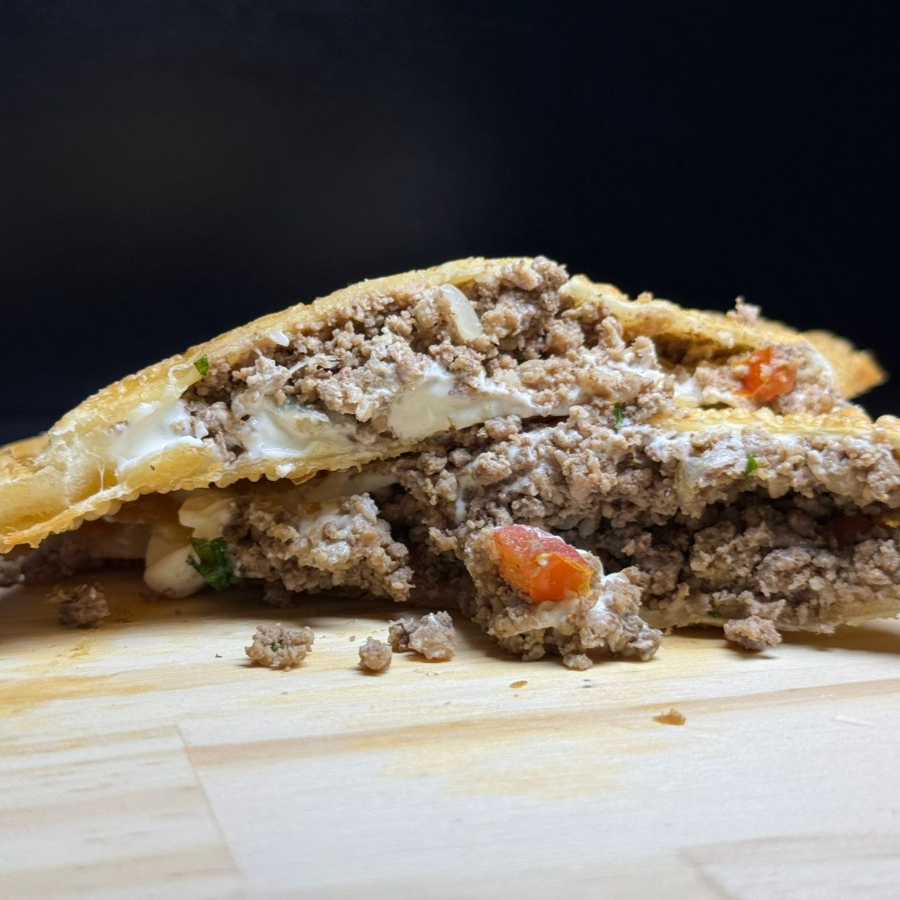 Um delicioso pastel (escolha o tamanho), produzido assim que você finaliza seu pedido, tendo como ponto forte o frescor e qualidade dos ingredientes. que vai carne moida com tempero da casa.