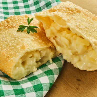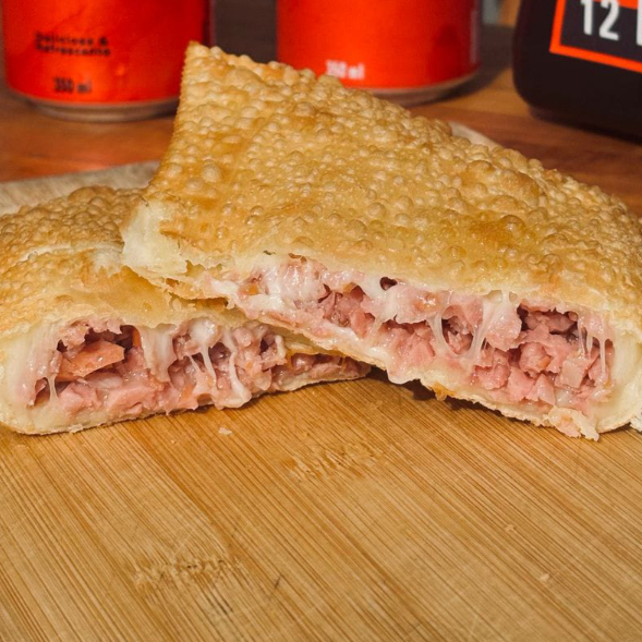 Um delicioso pastel (escolha o tamanho), produzido assim que você finaliza seu pedido, tendo como ponto forte o frescor e qualidade dos ingredientes. que vai batata cozida com mussarela, presunto, catupiry e oregano
