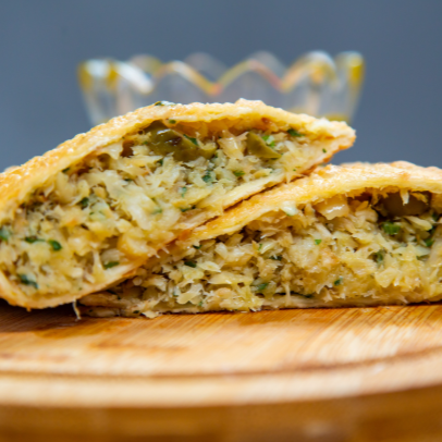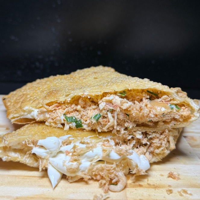 Um delicioso pastel (escolha o tamanho), produzido assim que você finaliza seu pedido, tendo como ponto forte o frescor e qualidade dos ingredientes. que acrecenta atum, cebola, tomatee salsinha.