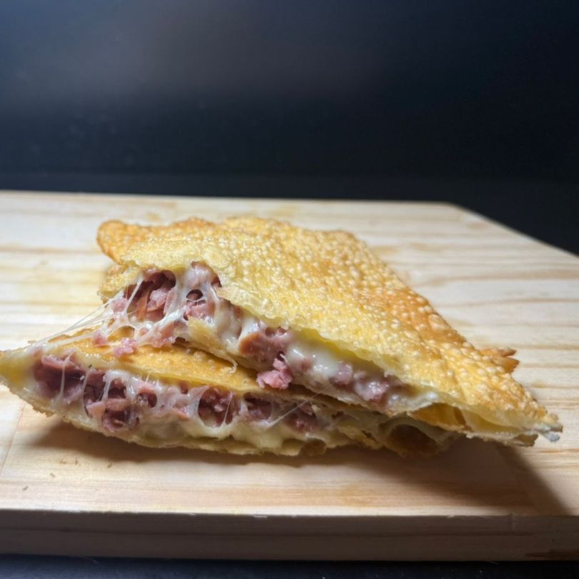 Um delicioso pastel (escolha o tamanho), produzido assim que você finaliza seu pedido, tendo como ponto forte o frescor e qualidade dos ingredientes. a calabresa e moida com uma fatia de mussarela.