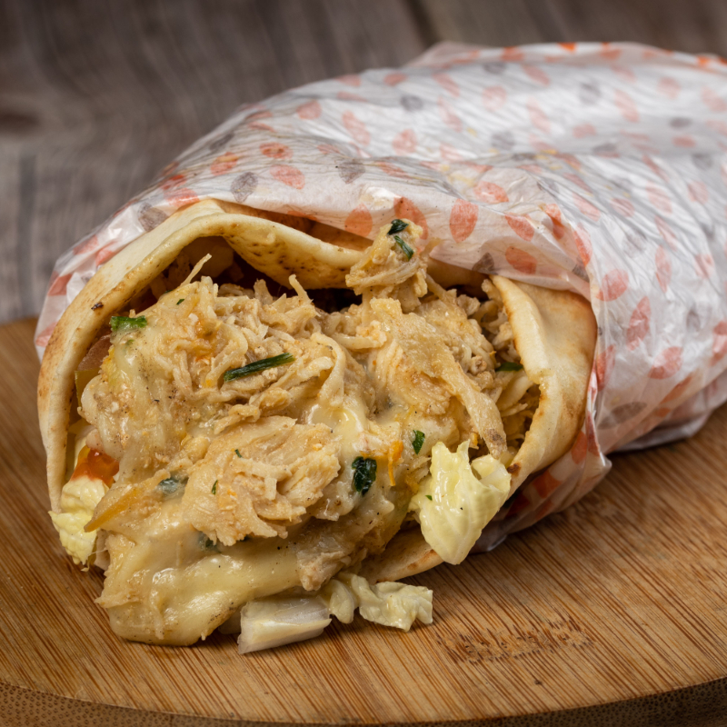 Lanche feito no Pão Sirio,Molho de Alho especialidade da casa,salada e Carne e Frango
