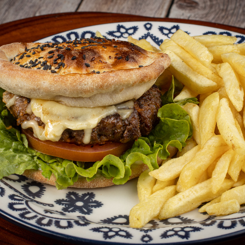 Hamburguer de 180 g de Kafta ,feito em Pão turco ,assado na hora ,Molho especial ,Queijo,Salada e Fritas ,Acompanha Limonada Turca