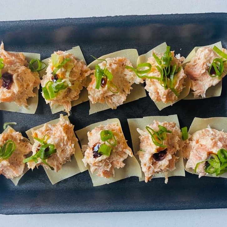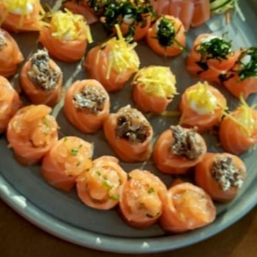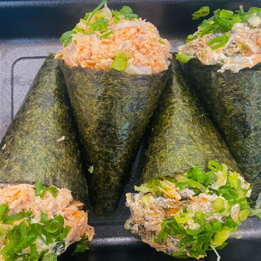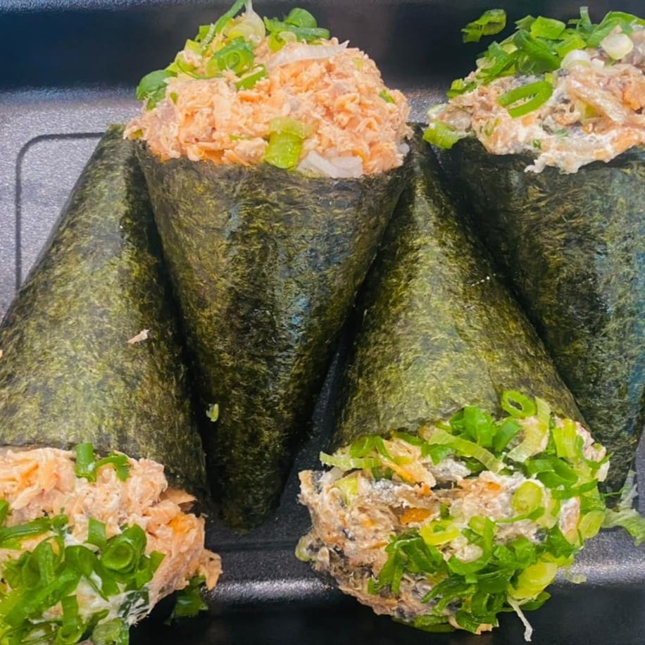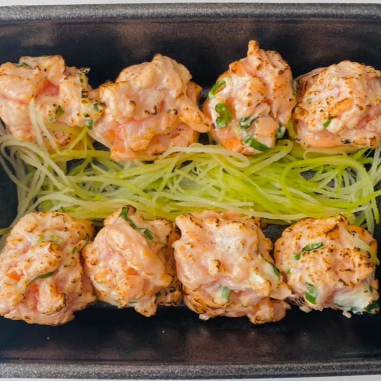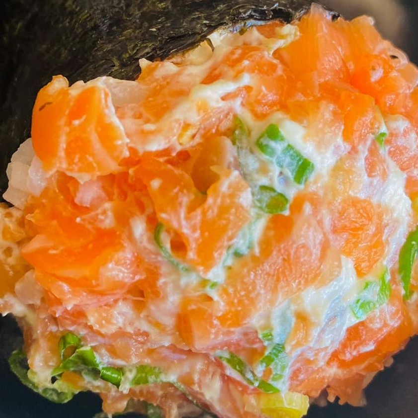 Sushi de salmão picadinho com cebolinha e maionese Acompanha 1 sachê tarê/ 1 sachê shoyo e 1 hashi. Caso queira á parte temos a opção de pedir.