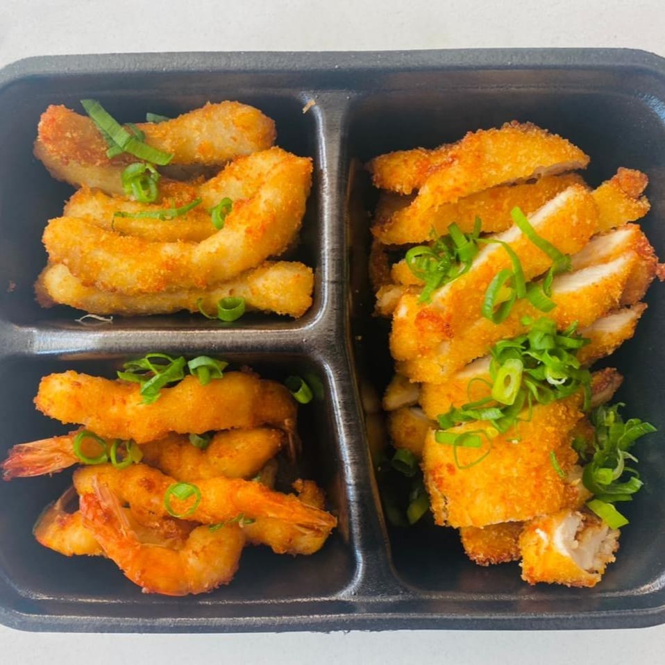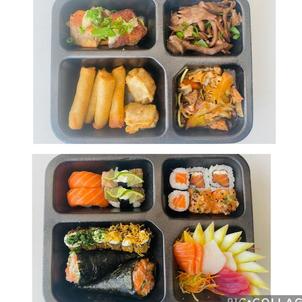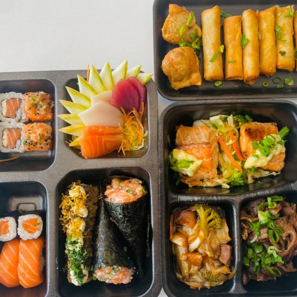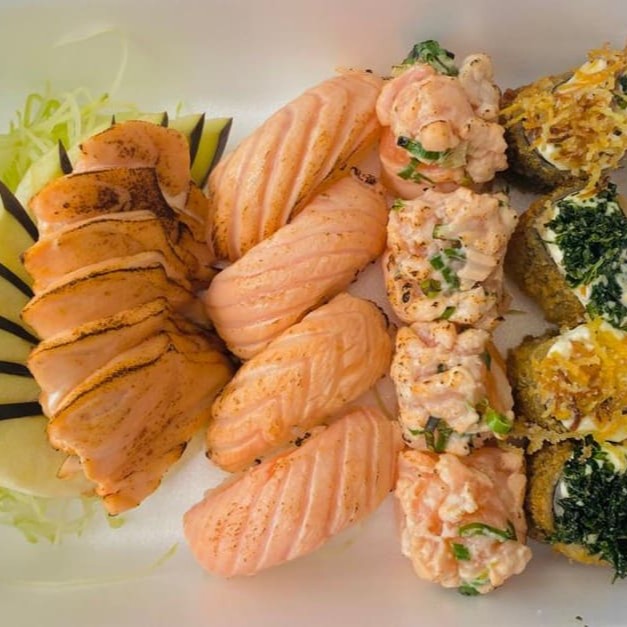 6 Sashimi Misto (salmao,prego e polvo) 2 Jhous 2 Uramaki 6 Niguiri (polvo,salmao e camarao) 2 Salmonmaki 4 Hot Holl 2 Mini Temakis (a escolha do cliente) 1 Porcão Shimeji Pequeno 2 Salmao Grelhado Com Legumes 1 Yakissoba Pequena 2 Harumaki Queijo 2 Harumaki Legumes 2 Guiozas 2 Croquete 1 porcção De Lula a dore 6 Camarão Empanado