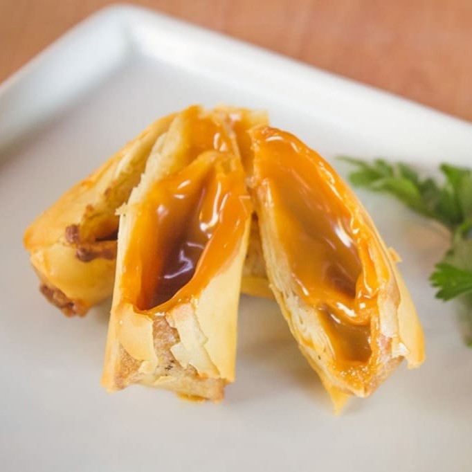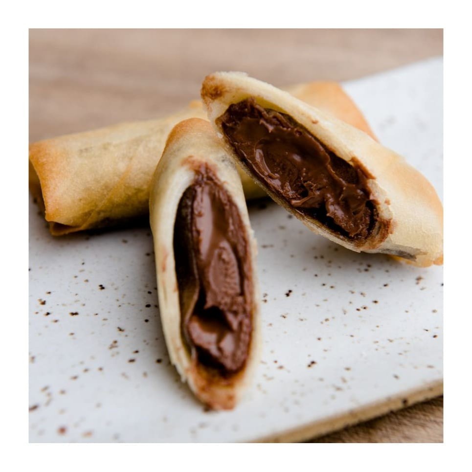 Bolinho Primavera Recheado Com Chocolate Acompanha 1 sachê tarê/ 1 sachê shoyo e 1 hashi. Caso queira á parte temos a opção de pedir.