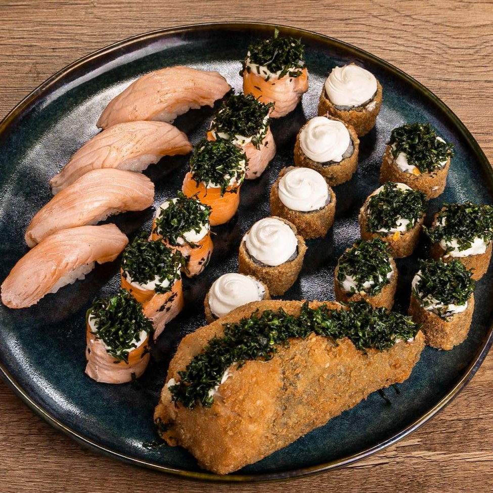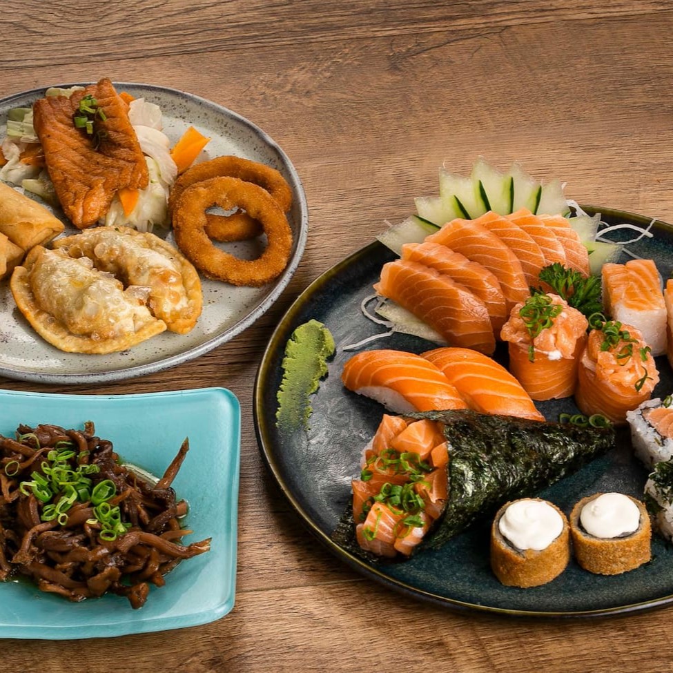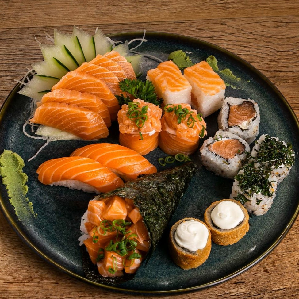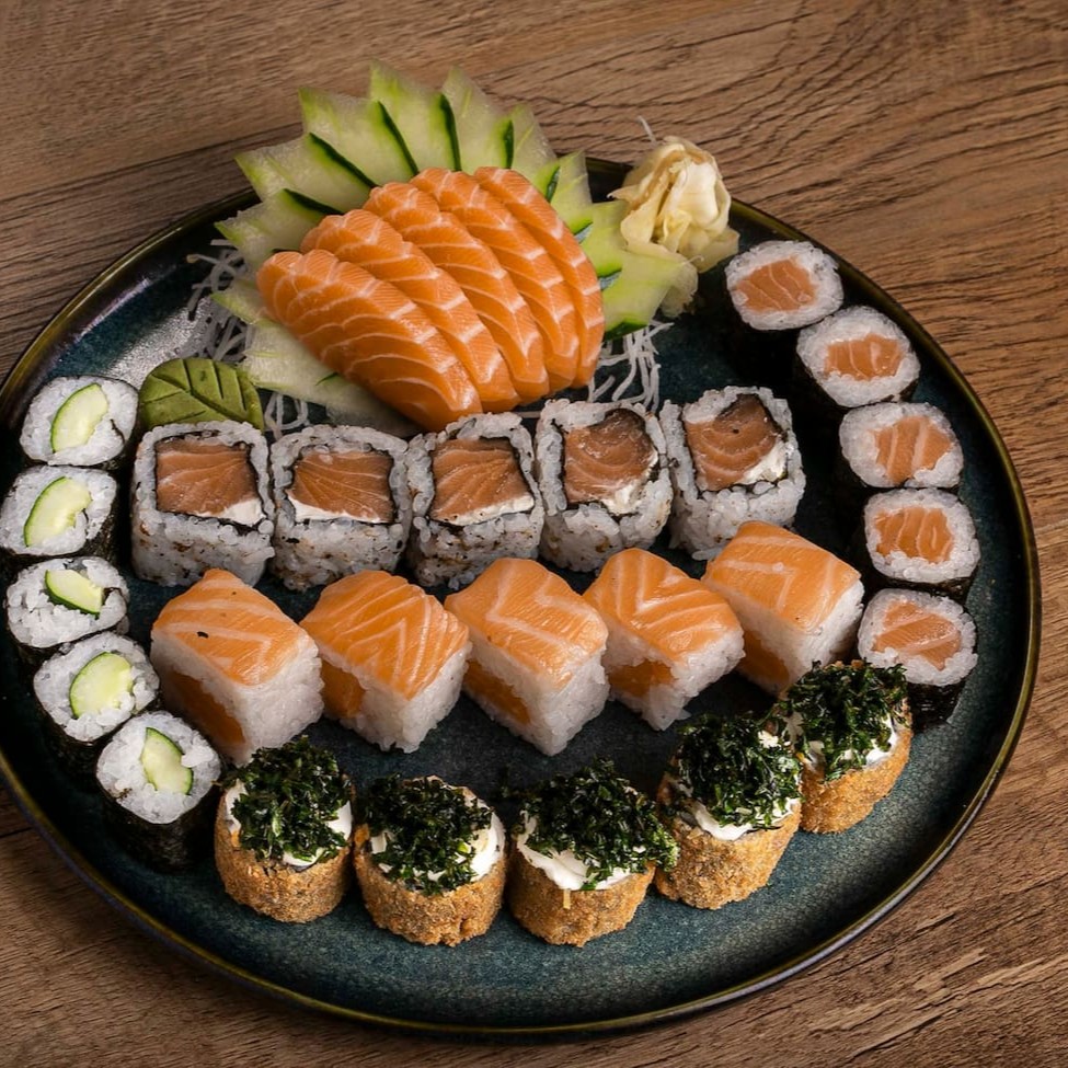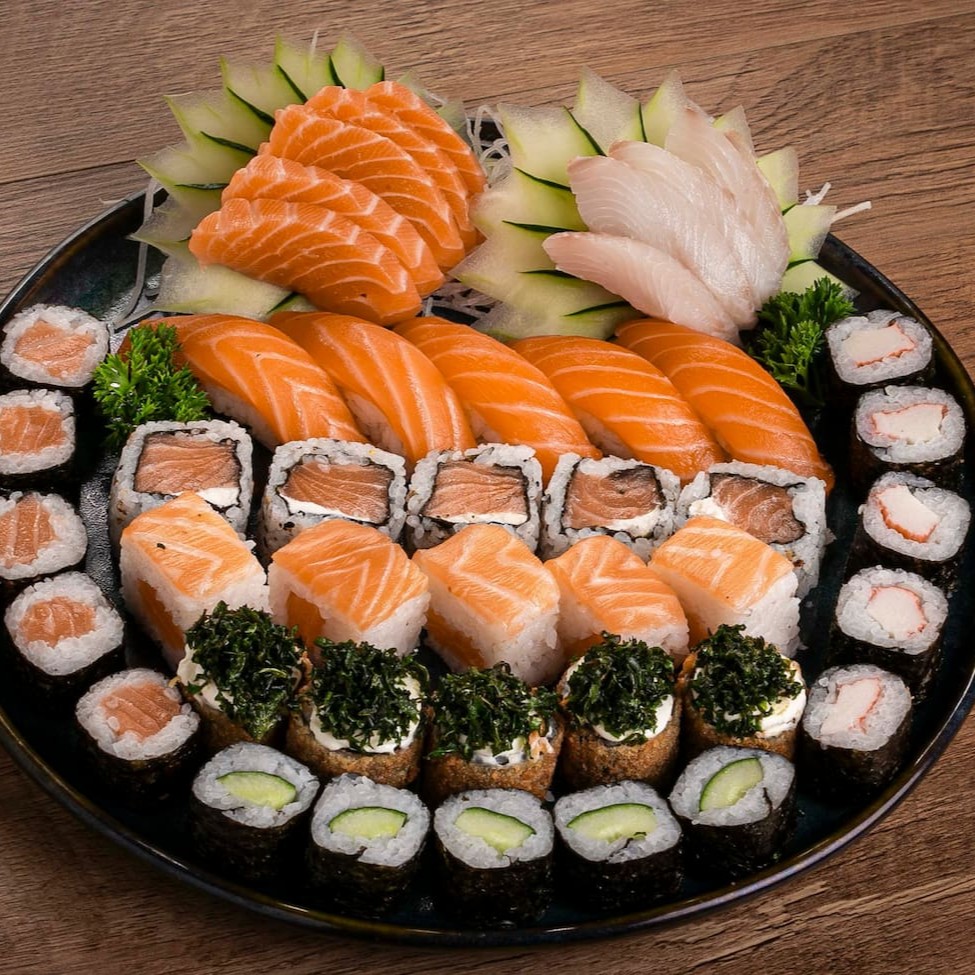 5 Sashimis de Salmão 5 Sashimis de Tilápia 5 jou Doritos 5 Jou Couve 5 Uramakis de Salmão 5 Salmomakis 5 Kapamakis 5 Hot roll com Cream Cheese