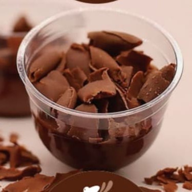 Blend de chocolate nobres, meio amargo e ao leite, finalizado com generosas raspas de chocolate ao leite.