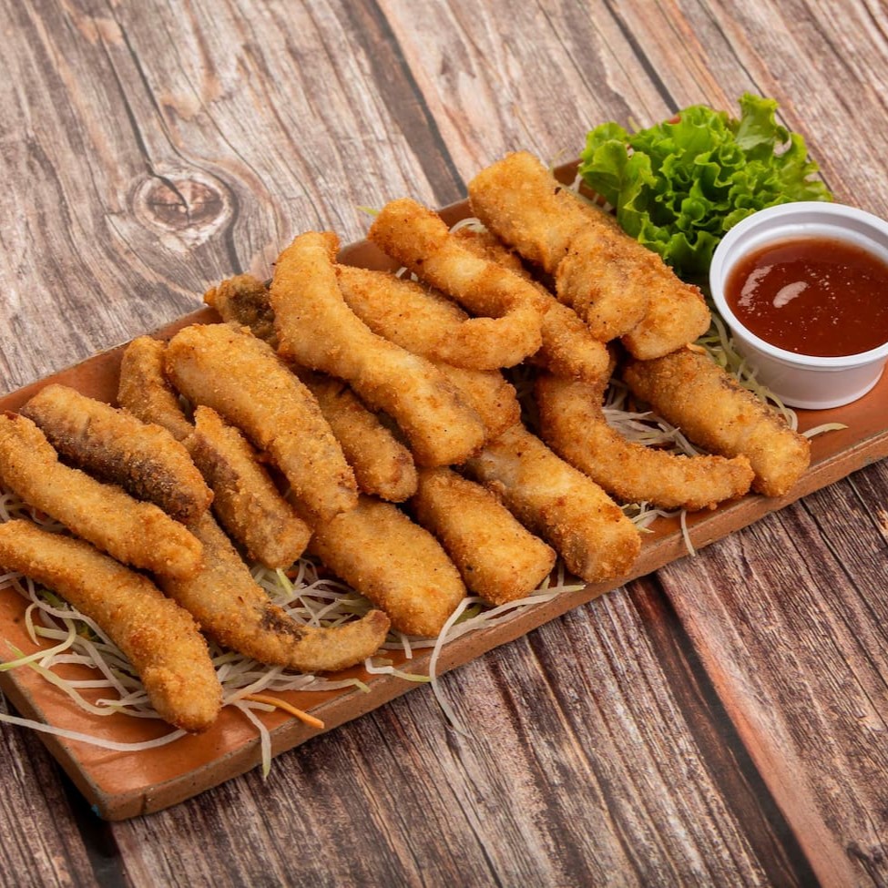 Tilápia em tiras empanada com molho especial.