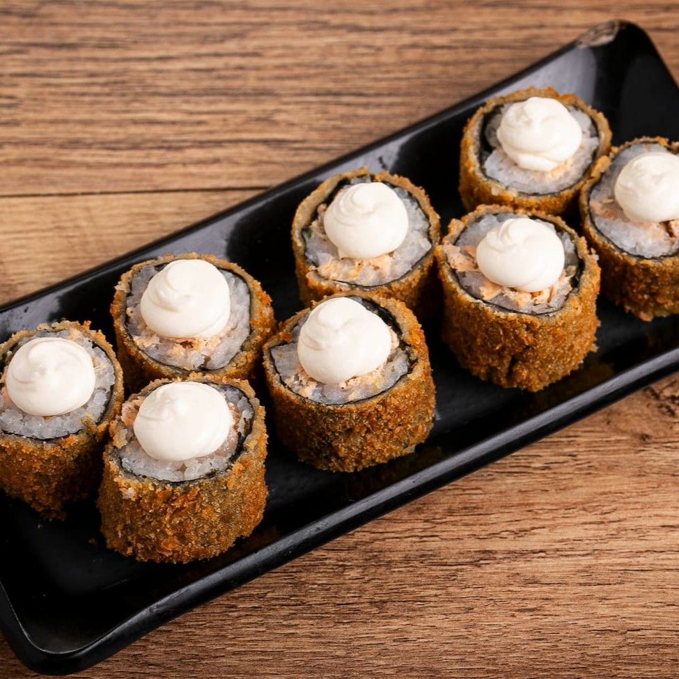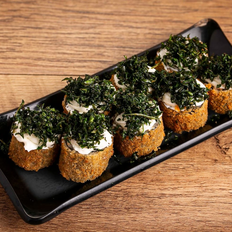 Temaki Salmão Empanado com Cream Cheese e Cebolinha.