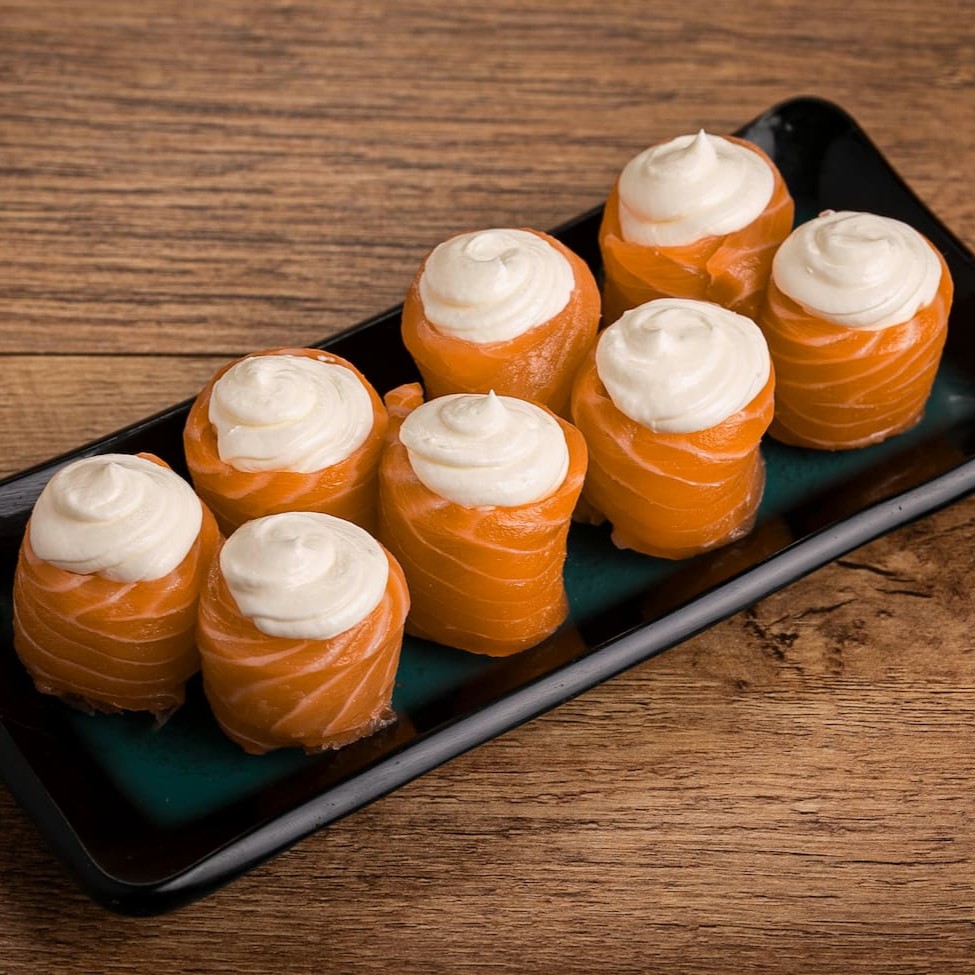 "8 Jou's de Salmão com Cream Cheese. Obs: Não é permitido trocar as peças. Oferecemos a opção ""Monte seu Combo""."