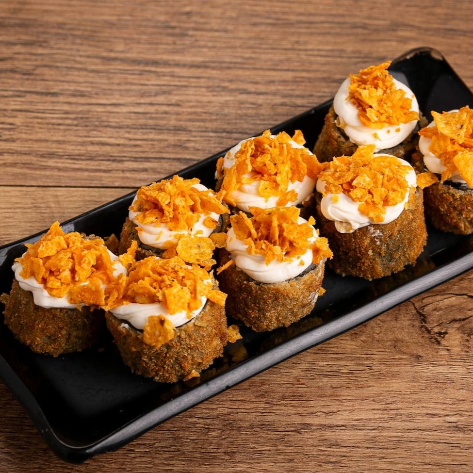 Temaki Camarão Empanado com Cream Cheese e Cebolinha.