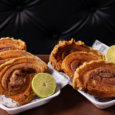Nossa feijoada em formato de petisco, massa de feijoada cremosa recheada com couve, torresmo, calabresa defumada e pimenta biquinho.