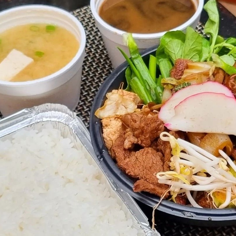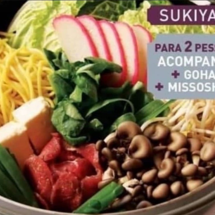 O Sukiyaki é um prato japonês quente e reconfortante, preparado em uma panela especial, geralmente de ferro fundido. É composto por fatias finas de carne (tipicamente carne bovina), tofu, cogumelos , cebolinhas, broto de feijao, macarrão de konnyaku acelga, naruto, abobrinha e cebola todos cozidos lentamente em um molho doce e saboroso, à base de shoyu, mirin e açúcar. O cozimento lento permite que os sabores se misturem, criando um prato deliciosamente equilibrado entre doce e salgado, com ingredientes tenros e mergulhados em um molho irresistível. Tradicionalmente, é serv
