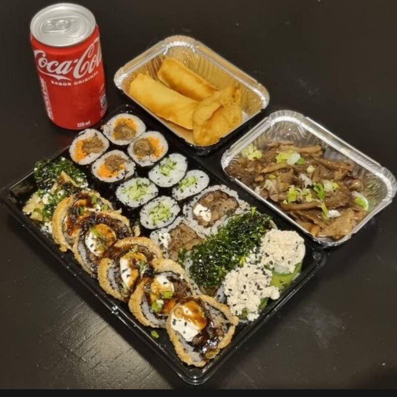 Esse combo vai acabar com a sua fome, vai um combinado com 18 peças de sushis totalmente veganos que são 4 uramaki de shimeji, 4 makisushi vegano ( enrolado recheado com tomate seco, shimeji, rucula), 4 Hot Holls de shimeji, 2 jou de Pepino recheados com tofu ou shimeji, bastante coisa gostosa nesse combinado né? E para melhorar mais ainda 2 guiosas fritas ( que o recheio vai depender do Dia pode ser de legumes, shimeji ou tofu), e mais 1 Coca cola lata gelatinha, é bom ou não é? Peça já o seu Pode acrescentar cream chesse caso seja vegetariano colocar na descrição se