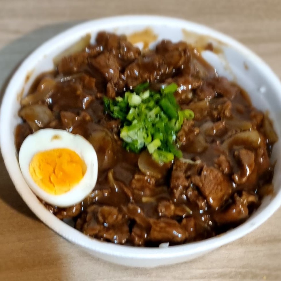 Gyudon é um prato bem tradicional japonês, feito com carne bovina cozida à base de molho especial da casa, shoyu, cebola, e nitamago(ovo cozido) finalizamos com cebolinha, a base dele é gohan(arroz japonês)