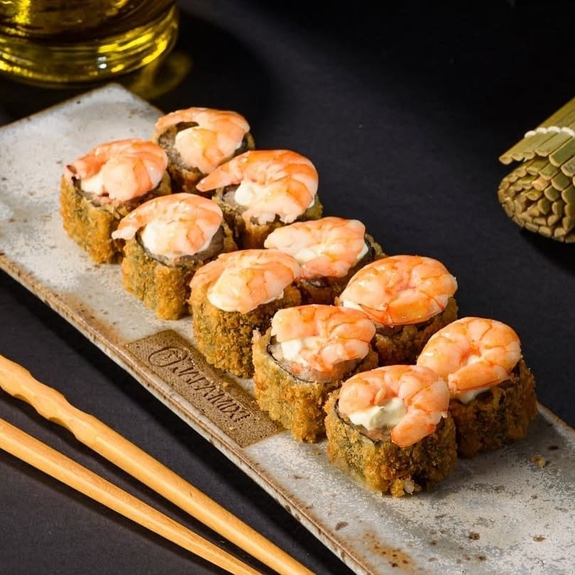 8 unidades de hot holl de camarão com creme chesse e molho tarê