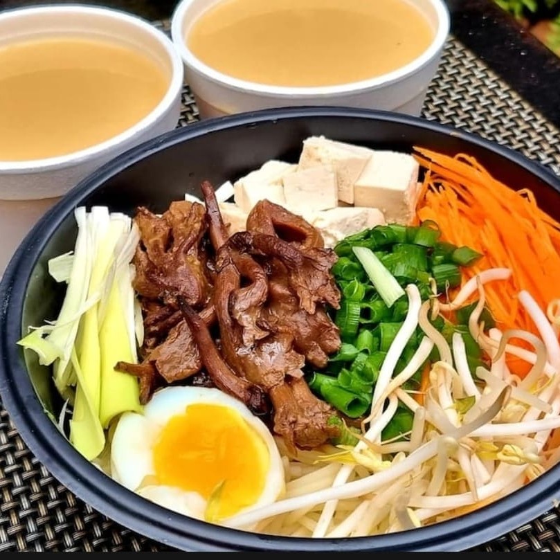Um autêntico Miso Lamen vegano, mergulhado em um caldo rico e reconfortante, repleto de sabores provenientes de ingredientes naturais e frescos, combinando o tofu macio, uma variedade de vegetais frescos e macarrão perfeitamente cozido. Acompanhado por uma refrescante Coca-Cola gelada para equilibrar os sabores e duas guiozas deliciosamente recheadas, esta refeição é uma celebração de sabores veganos e uma explosão de prazer para o paladar!