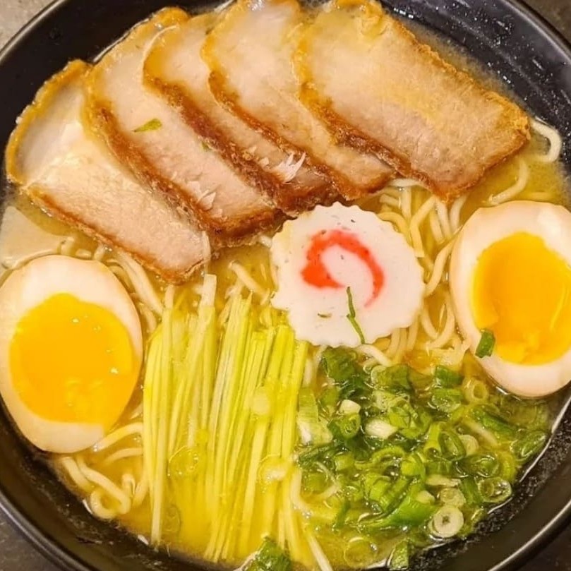 Um Miso Lamen deliciosamente preparado com a riqueza do caldo de missô, mergulhando uma combinação exuberante de macarrão perfeitamente cozido, chuchu , a suavidade do ovo cuidadosamente preparado, a beleza do naruto fatiado, a frescura da cebolinha e a profundidade do alho-poró. Cada colherada é uma explosão de sabores que se misturam harmoniosamente, oferecendo uma experiência gastronômica repleta de texturas e um sabor marcante que aquece a alma.