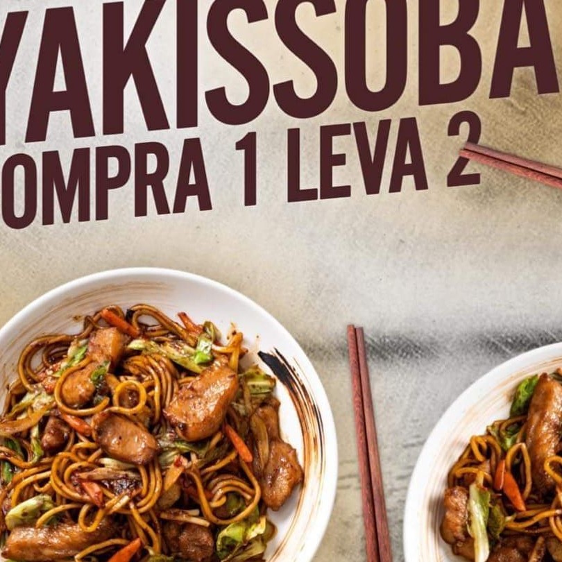 Compra 1 yakissoba de frango, carne e legumes de 500 gramas e ganha outro do mesmo tamanho, promoção por tempo limitado