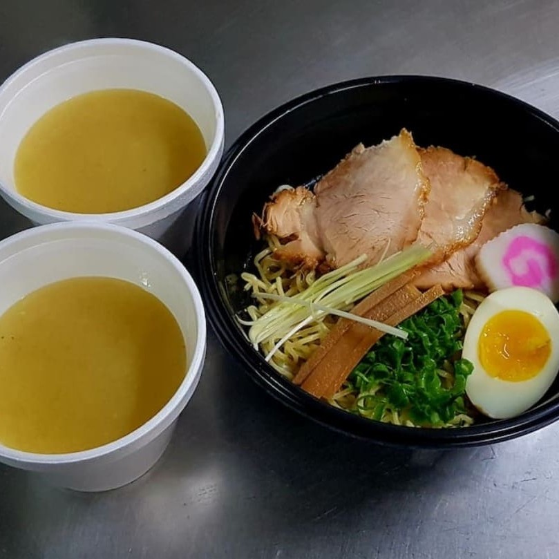 Shio lamen é um lamen mais suave e com um caldo a base de frango e sal Ele vai 3 chachus 1/2 nitamago Cebolinha Alho-poró 1 naruto Macarrão de lamen Caldo a base de frango e sal