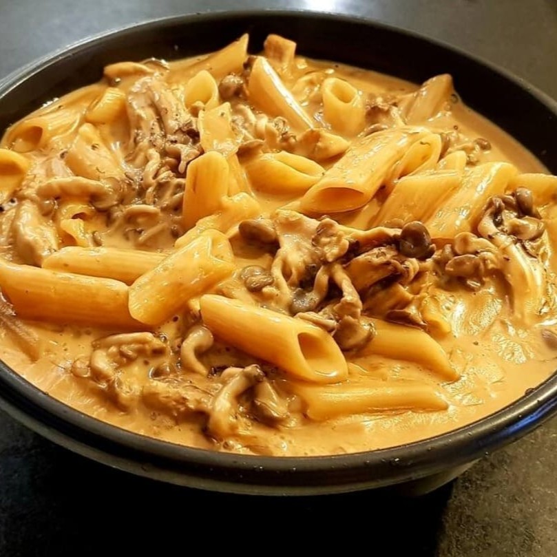 Penne kyoto é um prato bem delicioso que vai, macarrão penne, frango, creme de leite fresco, gengibre, olho-poro,shoyu e o tempero especial da casa, serve 2 pessoas