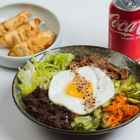 Combo Poke Koreanos (bibimbap)+ 3 Un Guioza + Coca Cola Lata