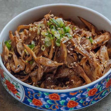 Shimeji temperado com molho a base de shoyu ao estilo Dakorea