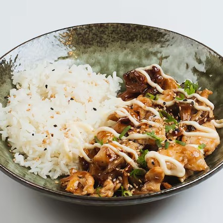 Peito de frango grelhado no ponto certo, coberto com cogumelos shimeji salteados e regado com nosso exclusivo molho teriyaki, que combina o sabor agridoce do shoyu com um toque adocicado. Finalizado com maionese artesanal da casa, gergelim e cebolinha, proporcionando uma explosão de sabores orientais. Acompanhamento: Escolha 1 opção de acompanhamento.