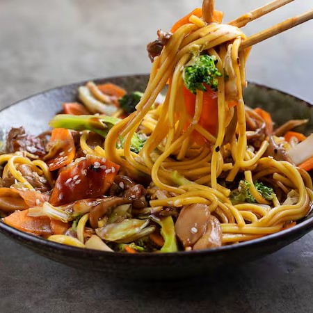 Delicioso macarrão oriental salteado no wok, combinado com tiras suculentas de carne bovina e peito de frango, envolto em nosso exclusivo molho da casa à base de shoyu. Acompanha uma seleção de vegetais frescos: brócolis, cenoura, repolho e acelga, garantindo uma refeição rica em sabor e textura.