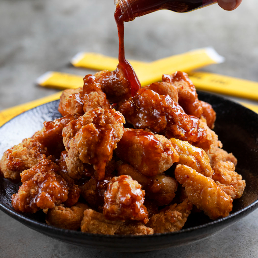 Peito de frango empanado e frito até ficar dourado e crocante, coberto com nosso molho agridoce a basede gochujang (pasta de pimenta coreana levemente picante e fermentada). Finalizado com gergelim torrado e cebolinha fresca — um sabor autêntico e marcante da culinária coreana. (PICANCIA LEVE)