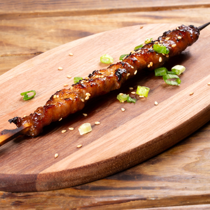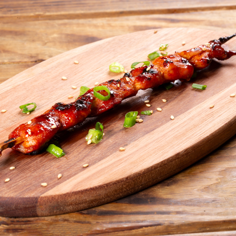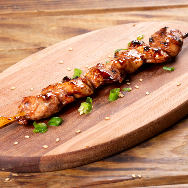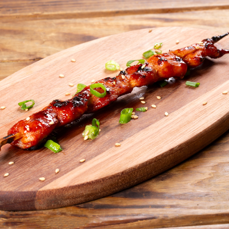 Suculentos Pedaços de Sobrecoxa na Brasa, Pincelados em Nosso Delicioso Molho Tare.