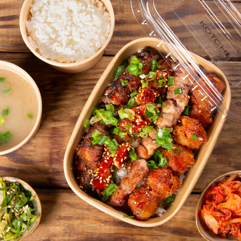 Combo com 3 Kotchis à sua escolha. Escolha 3 Kotchis de sua preferencia servidos em Bowl. Retiramos os espetos e montamos tudo sobre o arroz, criando uma combinação deliciosa . Acompanha Arroz, Porção individual de Kimtchi, Salada de Cebolinha, Sopa Missoshiru