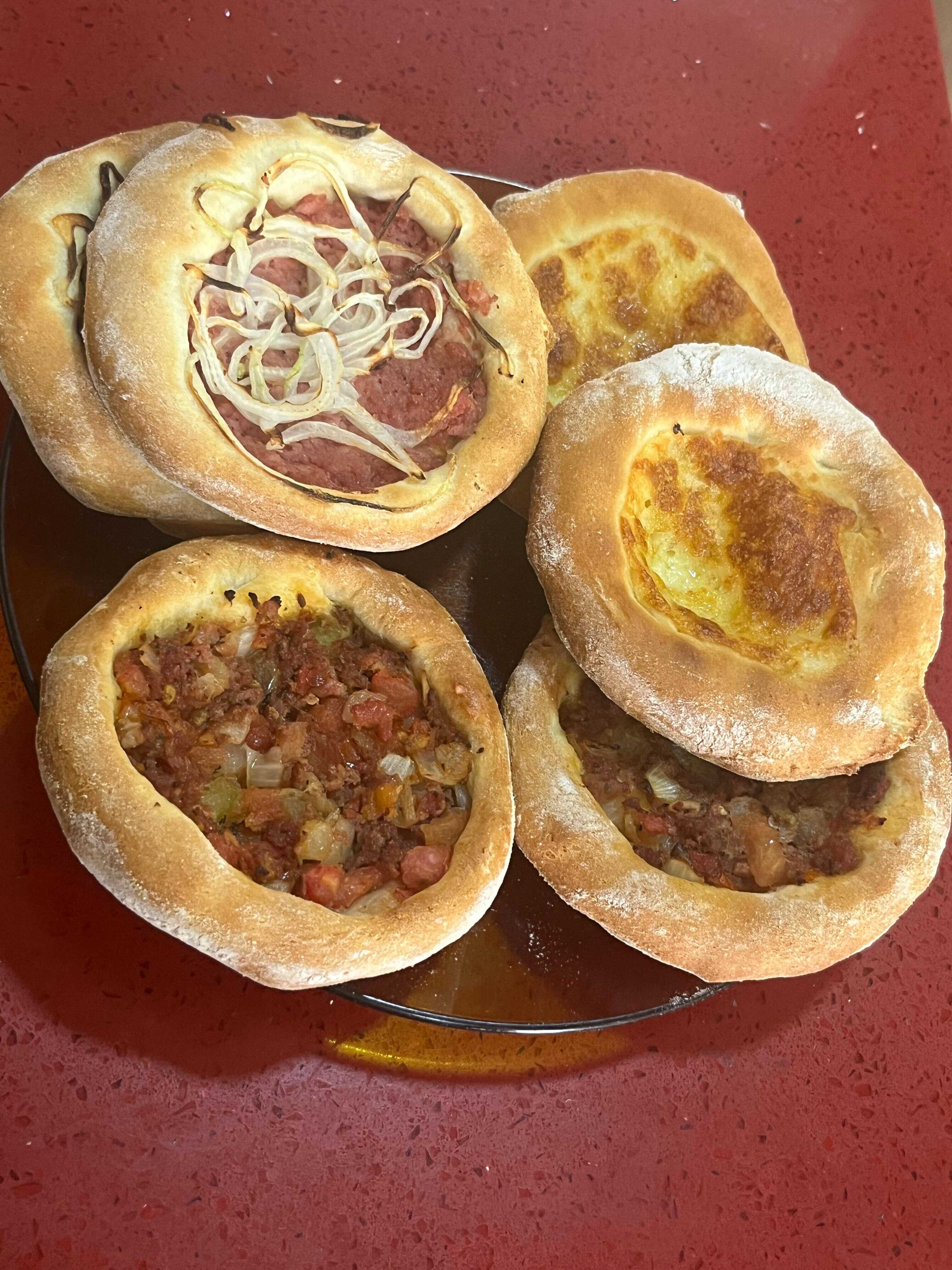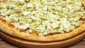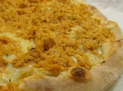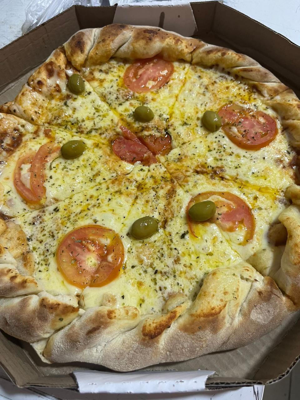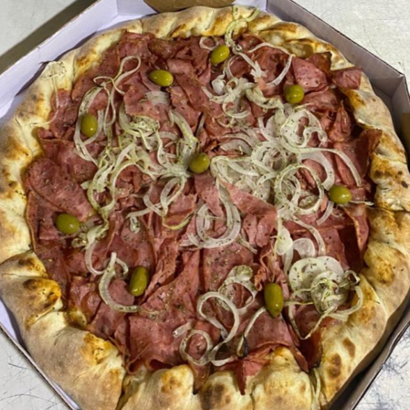 Calabresa, cebola, mussarela, azeitona e orégano.