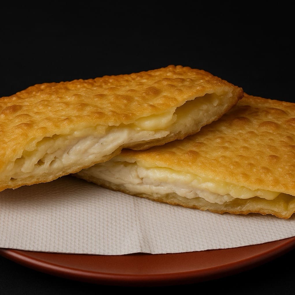 """Pastel de frango com queijo: frango desfiado bem temperadinho, combinado com queijo derretido dentro de uma casquinha crocante e dourada… simplesmente irresistível! ""l"