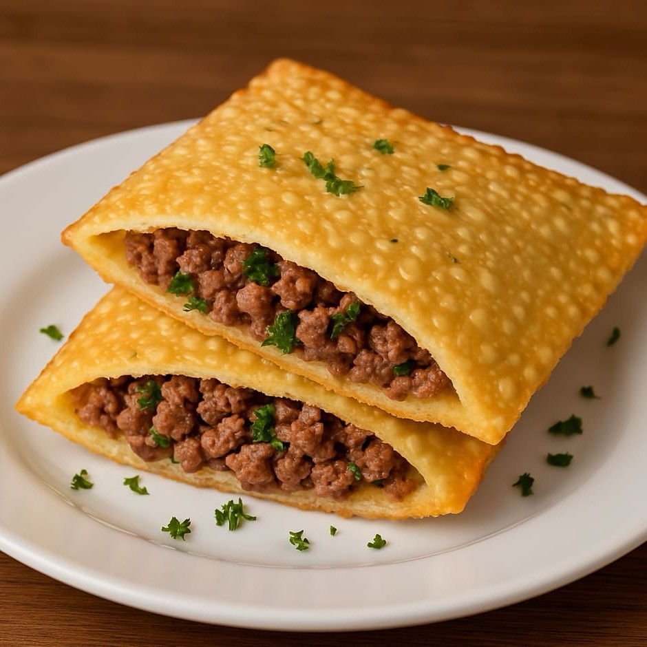 Delicioso carne de primeira bem temperada, junto com uma massa crocante e dourada na medida certa.