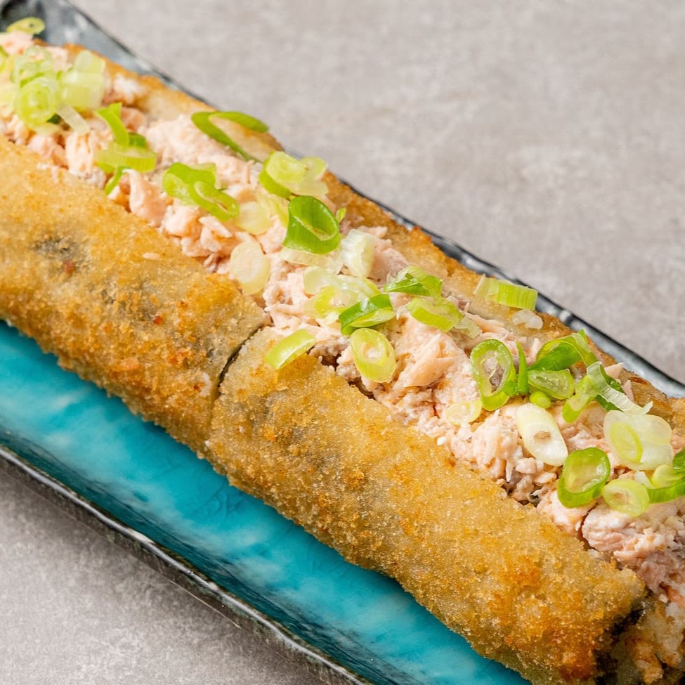Temaki de salmão grelhado e empanado com creme cheese e cebolinha