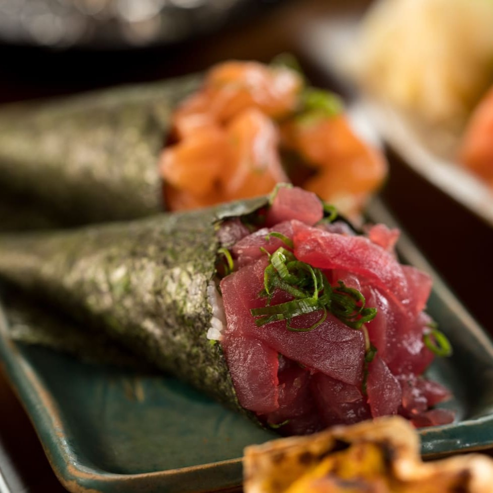Temaki de salmão com arroz ,creme cheese e cebolinha