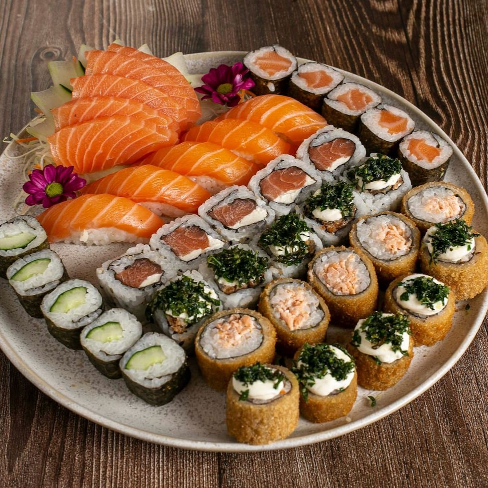 5 sashimi de salmão 5 uramaki de salmão 5 hossomaki 5 kapamaki 5 uramaki skin couve crispe 5 hot holl 5 nhot holl couve crispe sem alterações nos itens ;