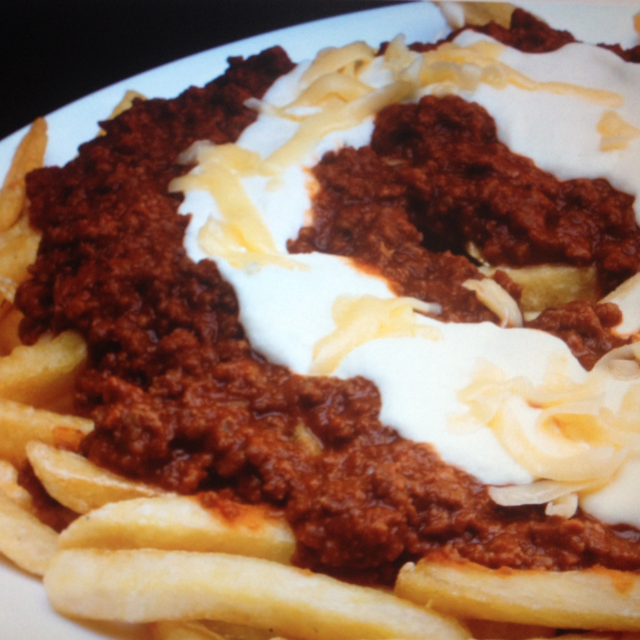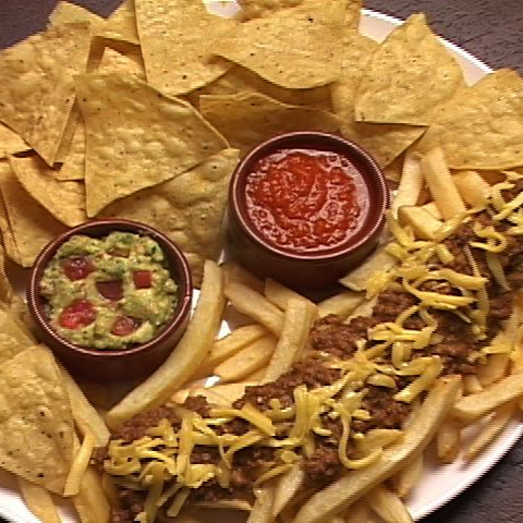 Batatas fritas com carne moída temperada com molho especial mexicano e queijo derretido (tudo separado).