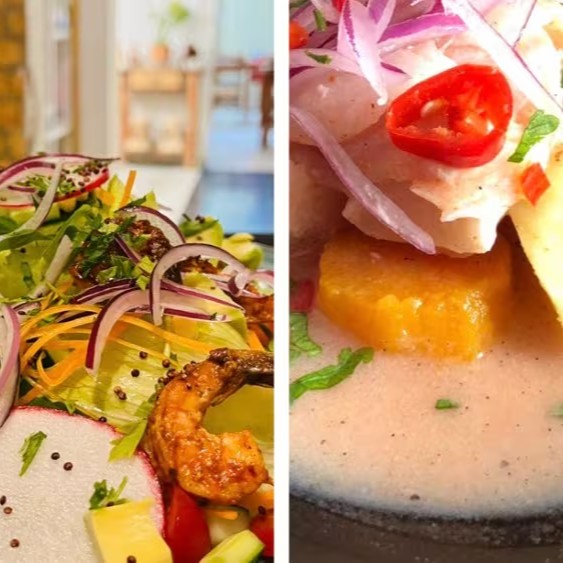 Ceviche + Camarões Grelhados Com Salada Fresca