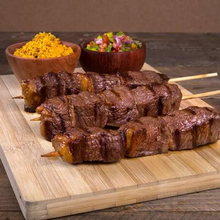 Delicioso contra filé assado na brasa. Acompanha farofa e vinagrete. Serve 4 pessoas.