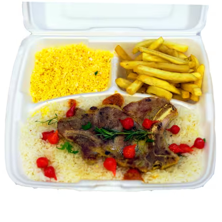 Carne, frango e linguiça assado na brasa, arroz, feijão, batata frita, farofa e salada. Serve 4 pessoas.(poções em marmita tamanho 9 de 1120ml)